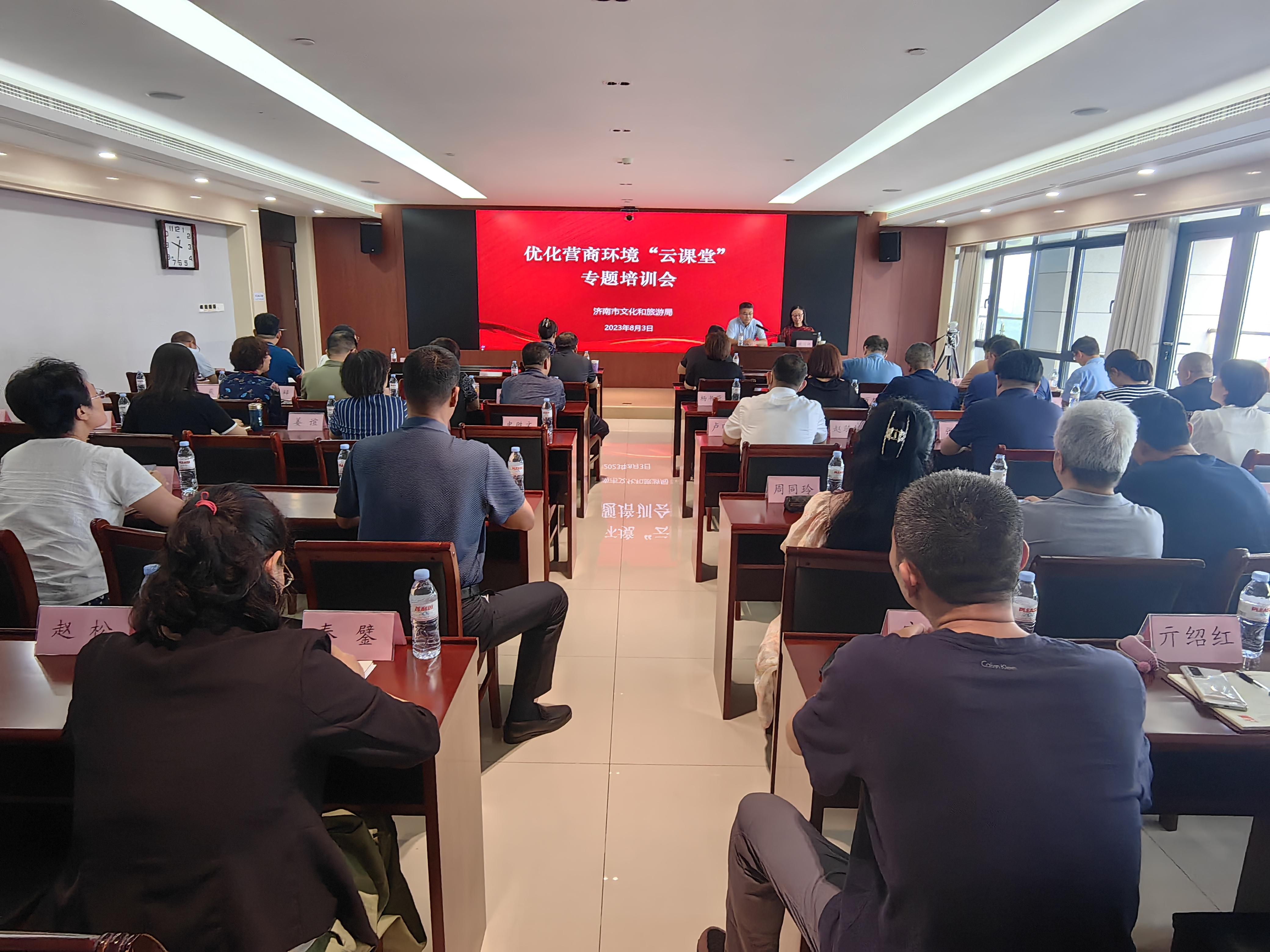 为全面营造市场化、法治化、国际化一流营商环境,切实提升营商环境工作队伍的理论水平、政策水平、业务水平,按照全市统一部署,8月3日,市文化和旅游局举办优化营商环境“云课堂”文化开放包容与城市软实力专题培训会。局党组成员、市管干部,局机关副处级以上领导干部(含二级调研员),市文化市场综合行政执法支队班子成员、各处(队)负责人参加会议。