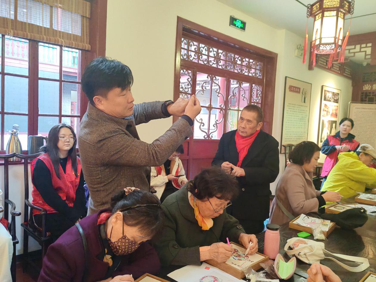曲山艺海博物馆的“曲艺寻访之旅”精准触动了老人们的地方文化记忆,围绕老茶馆、梨花大鼓等展陈的讲解,引发了老人们的深切共鸣。宋锦珍珠画非遗手作体验,更让老人在亲手制作中领略传统工艺之美,将文化认同转化为有形礼物。