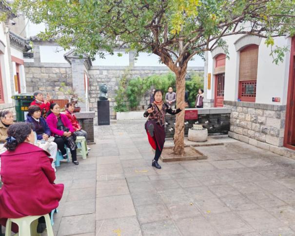 在老舍旧居举办的“重阳敬老·文化传承”活动中,老人们漫步故居,通过书房、客厅、手稿与旧照,沉浸式重温老舍先生与济南的深厚情缘。在随后的品茗交流与才艺展示环节中,老人们通过诗歌朗诵、太极拳、经典老歌等形式,在节日氛围中展现自我。