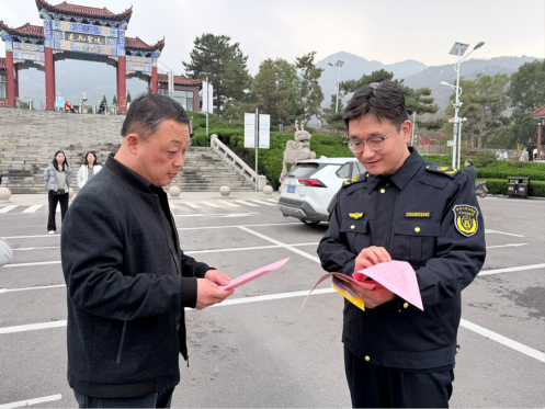 在景区门前,执法队员积极开展普法宣传活动,通过发放宣传资料、现场讲解等方式,向游客普及文明旅游、版权保护等相关法律法规知识,引导群众自觉守法、遇事找法,营造尊法学法守法用法的良好氛围。法治声音回荡在青山绿水间,使普法宣传更接地气、更具实效。