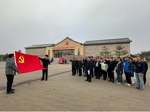 支队党总支联合第一书记驻村张积庄村党员干部,共同瞻仰“红旗飘万代”纪念碑,参观“薪火相传”群雕,并面对党旗重温入党誓词,进一步坚定理想信念。通过聆听现场讲解,大家感悟深刻,要以革命先辈为榜样,将红色基因融入文化执法实践,切实强化依法行政、执法为民的责任意识。