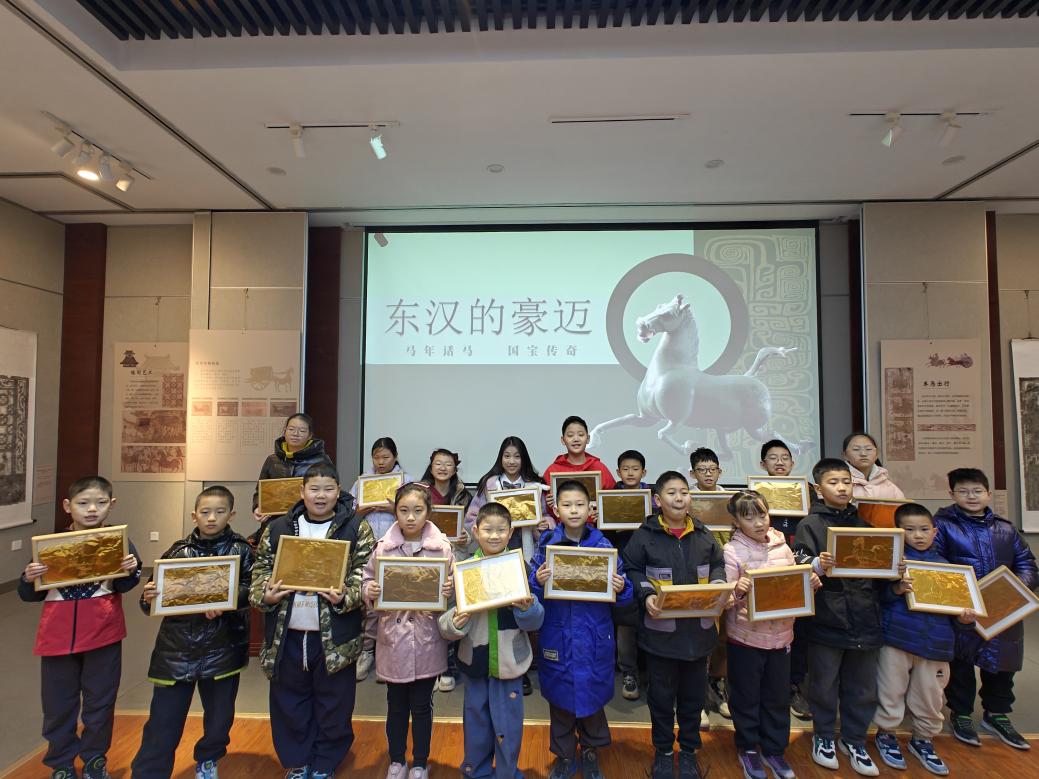 秉持“寓教于乐、寓学于趣”的理念,济南市博物馆策划推出八场特色社教活动,实现“观展+体验”深度融合。“马年话马·国宝传奇”系列活动,分主题解读古代铜奔马、三彩马等经典文化符号,带青少年解锁掐丝珐琅、青花瓷贴片画等非遗技艺,实现文化科普与非遗体验双向赋能。“传统民俗·年味延续”系列活动,邀请非遗传承人现场助力,鼓子秧歌展演气势恢宏,拓印楹联体验雅致有趣,让观众在视听盛宴中感受传统舞蹈的独特韵味,在笔墨书香中传承新春民俗记忆。同时,以志愿服务为纽带,开展了“传递书香 爱在归整”特色活动,实现社会效益与教育意义双提升。
