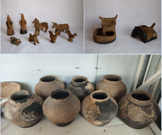 此次发掘历时近两个月,面积2000平方米。共清理墓葬121座,时代多为清代中晚期,部分时代为汉代、宋元、明代。墓葬形制有砖室墓、砖椁墓、土坑竖穴墓、土洞墓等,出土陶壶、铜镜、瓷碗、瓷罐、瓷灯盏、铜钱、铜扣、铜簪等完整及可复原器物500余件(组)。