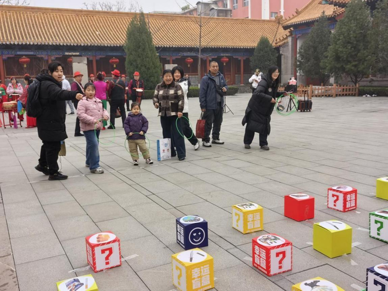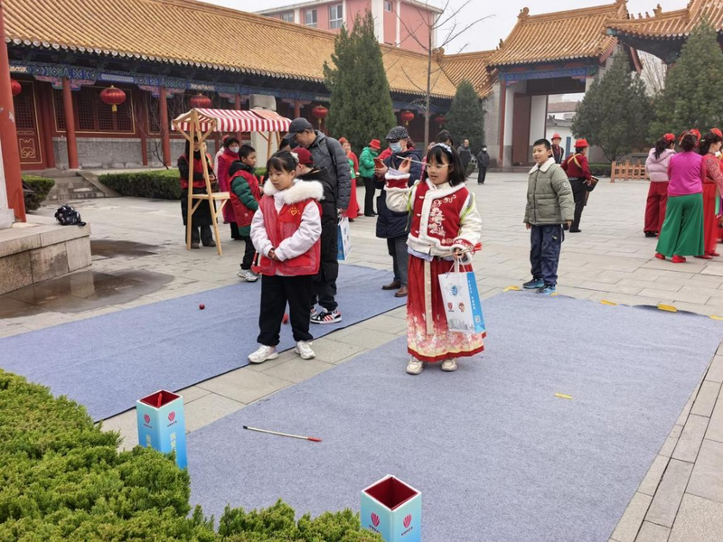 各场馆打造丰富互动体验,覆盖全年龄段,让市民游客从旁观者变为沉浸式参与者。曲山艺海博物馆先开展“曲艺探馆”,市民游客参观展厅了解山东大鼓、琴书等曲种知识,为猜谜做好文化铺垫;济南府学文庙以集章卷轴串联全程,游客循着古建脉络打卡各项活动。古建筑冰箱贴、小状元徽章DIY手作,让市民游客在动手间感受传统美学;投壶、捶丸等传统游艺项目老少皆宜。现场欢声笑语不断,各年龄段人群皆能找到乐趣。