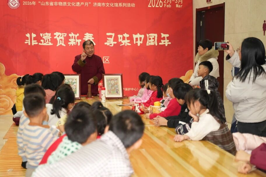 岁月更替,华章日新;年味渐浓,情满泉城。在2026马年新春临近、小年佳节到来之际,2月10日,“山东省非物质文化遗产月”济南市文化馆小年系列活动持续火热开展。活动以“非遗贺新春 寻味中国年”为主题,围绕场景化展示展销、沉浸式互动体验、创新性跨界融合三大方向,推出舞蹈快闪、舞龙舞狮展演、智能机器人才艺展示、非遗市集、NPC巡游、非遗体验课堂、专题展览等丰富板块,为广大市民群众打造了一场独具特色、异彩纷呈的马年新春文化盛宴。