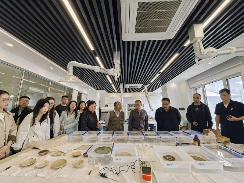 活动伊始,在省文物保护修复与鉴定中心主任王斌的引导下,市文保中心党员干部依次参观了纸质文物修复室、陶瓷文物修复室及分析检测实验室,细致了解残损文物如何“重获新生”。参观中,不少同志驻足观察修复师操作,对“最小干预、修旧如旧”原则有了更直观的理解。